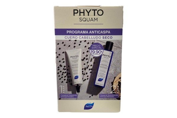 - 1 Champú PhytoSquam Fase 2 de mantenimiento: Específicamente pensado para el cabello seco, PHYTOSQUAM elimina de manera duradera la caspa garantizando hidratación y brillo al cabello. Su fórmula untuosa, enriquecida con activos vegetales sublimadores, hidrata y reestructura la fibra capilar. Una vez liberado de la caspa por un largo tiempo, el cabello recobra flexibilidad y suavidad. PROBADO BAJO CONTROL DERMATOLÓGICO.