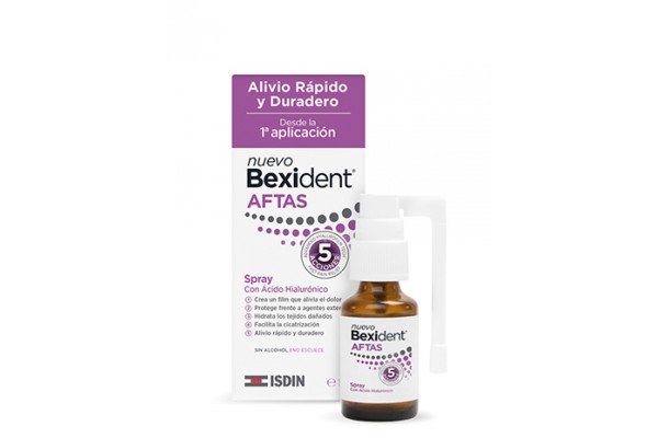 Bexident aftas spray crea una película encima de la afta que alivia el dolor mientras hidrata y facilita la cicatrización. Además, protege de agentes externos.
