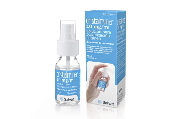 Cristalmina spray es un medicamento desinfectante, a base de clorhexidina digluconato, para toda la familia y su formato permite utilizarlo en cualquier lugar. Desinfecta en 15 segundos y protege durante 6 horas.
