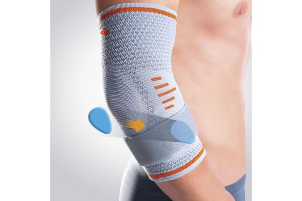 La codera está confeccionada en tejido transpirable y elástico, sin costuras para evitar rozaduras. El tejido en la zona del codo es de punto para evitar opresiones y compresiones no deseadas. Incorpora almohadillas visco-elásticas para distribuir mejor la compresión del vendaje desde los epicóndilos hacia las partes blandas, mientras ejerce un masaje intermitente. Incluye una cincha elástica para un mejor ajuste individual, consiguiendo así una tensión selectiva. La compresión dosificada ayuda a aliviar el dolor y a eliminar tensiones.