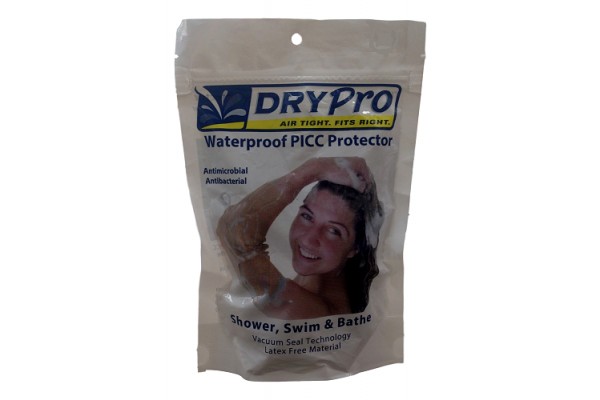 El protector PICC DryPro protege al catéter mientras se ducha o nada previniendo la entrada de agua. Este protector mantiene totalmente seca la zona aislada del agua haciéndolo ideal para la ducha, la piscina o el mar.