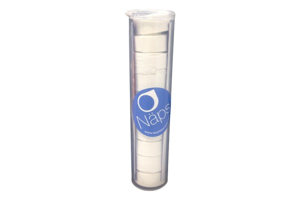 Las toallitas Näps son unas toallitas comprimidas en forma de pastilla que cuando la humedeces crece. Una vez abierta tiene un tamaño de 25x25.