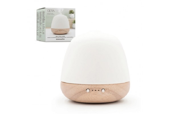 El difusor Cera de Pranarom está fabricado en madera del árbol del caucho con un acabado claro y cerámica granulada por la parte superior. Su inspiración nórdica le da una estética elegante y discreta.